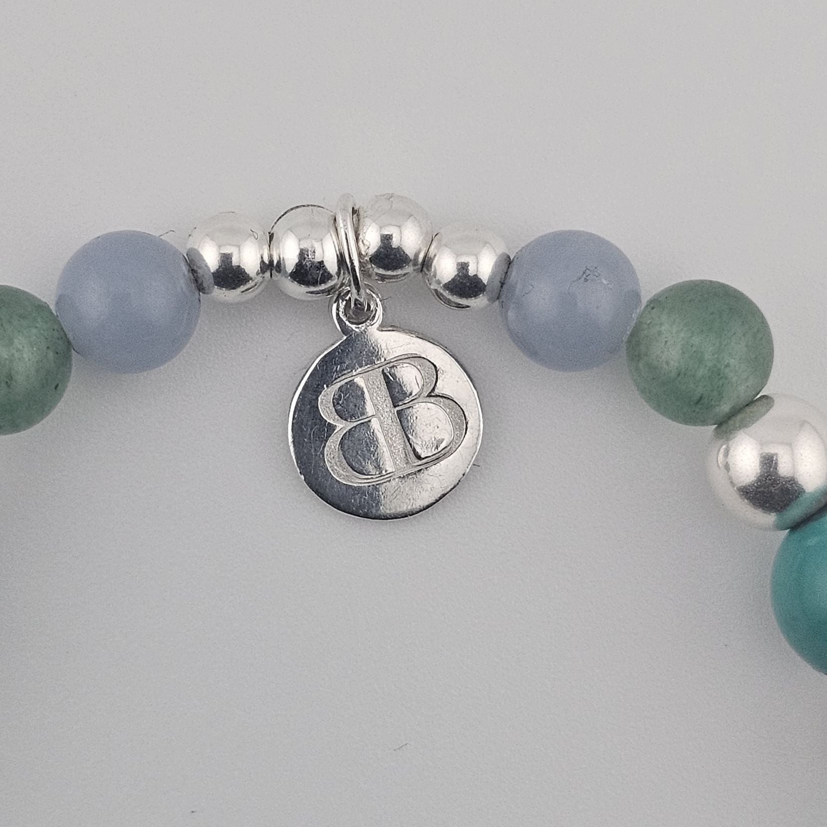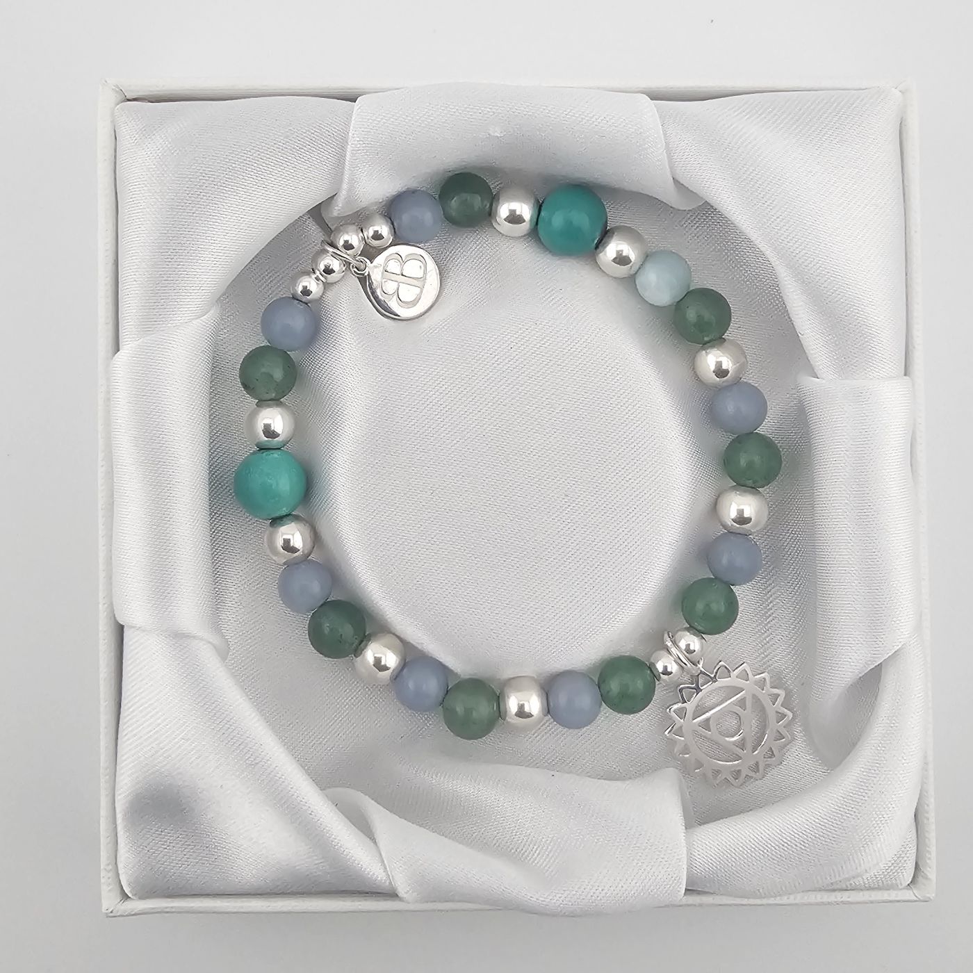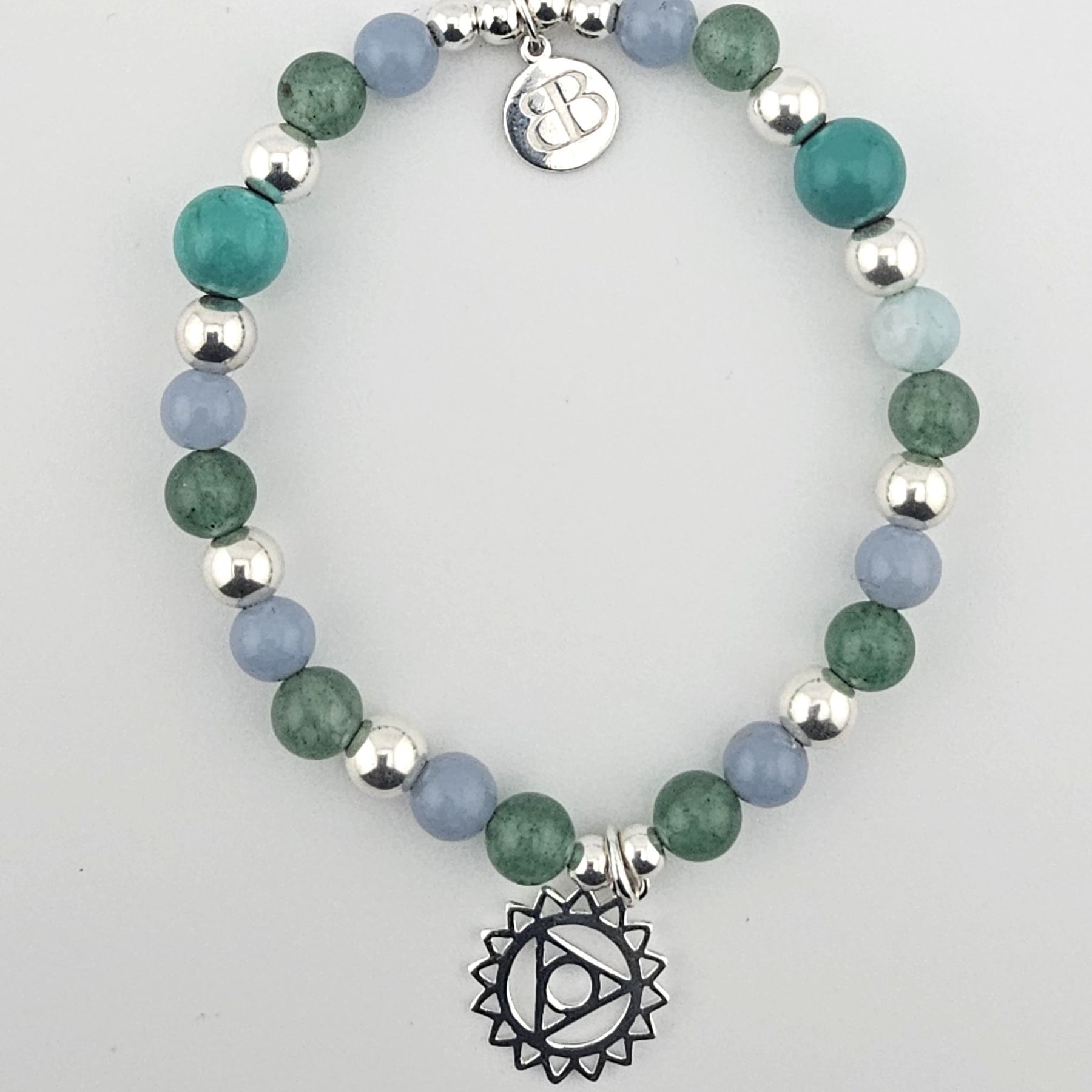 Sterling Silver Angelite & Aventurine Bracelet – Third Eye Chakra Spiritual Jewellery