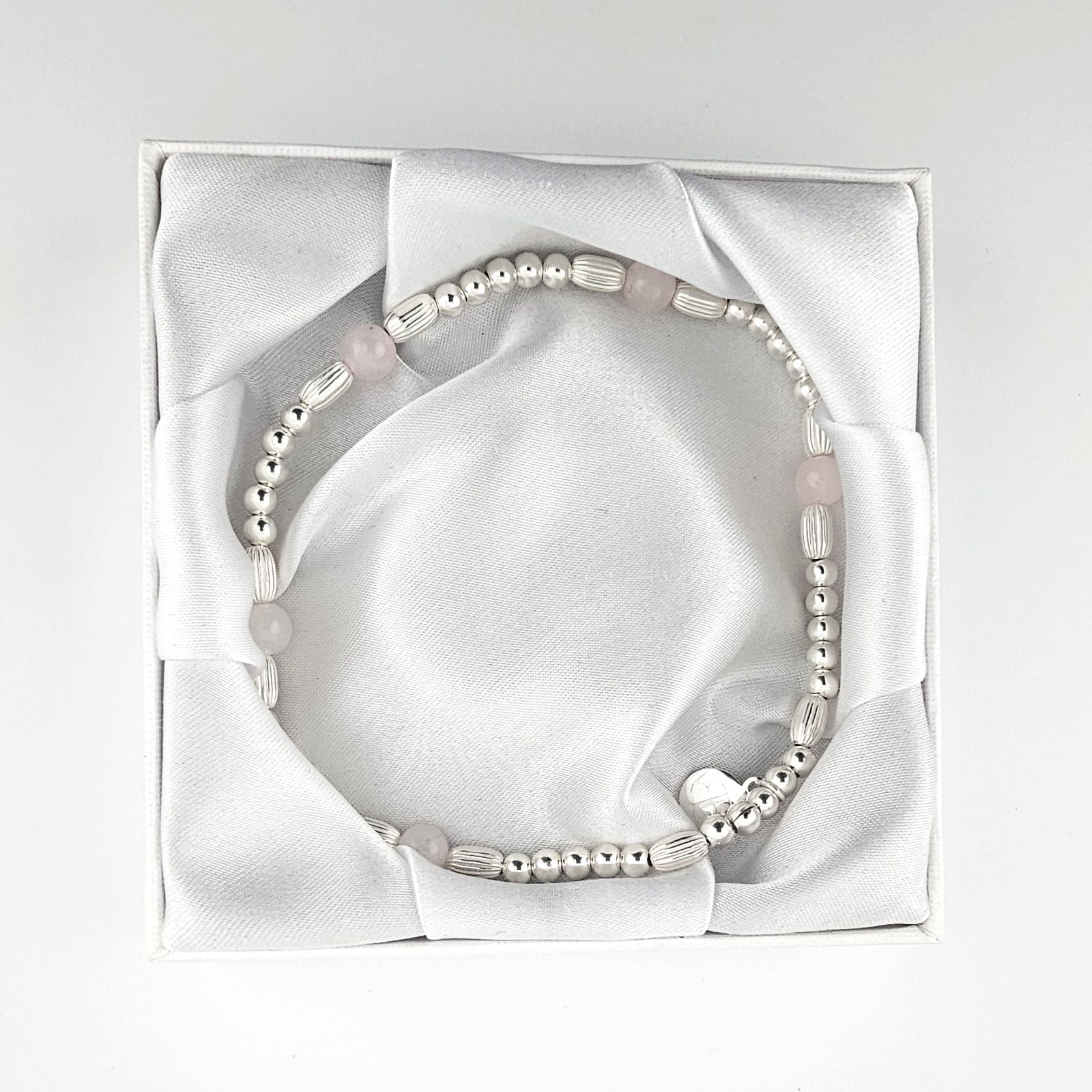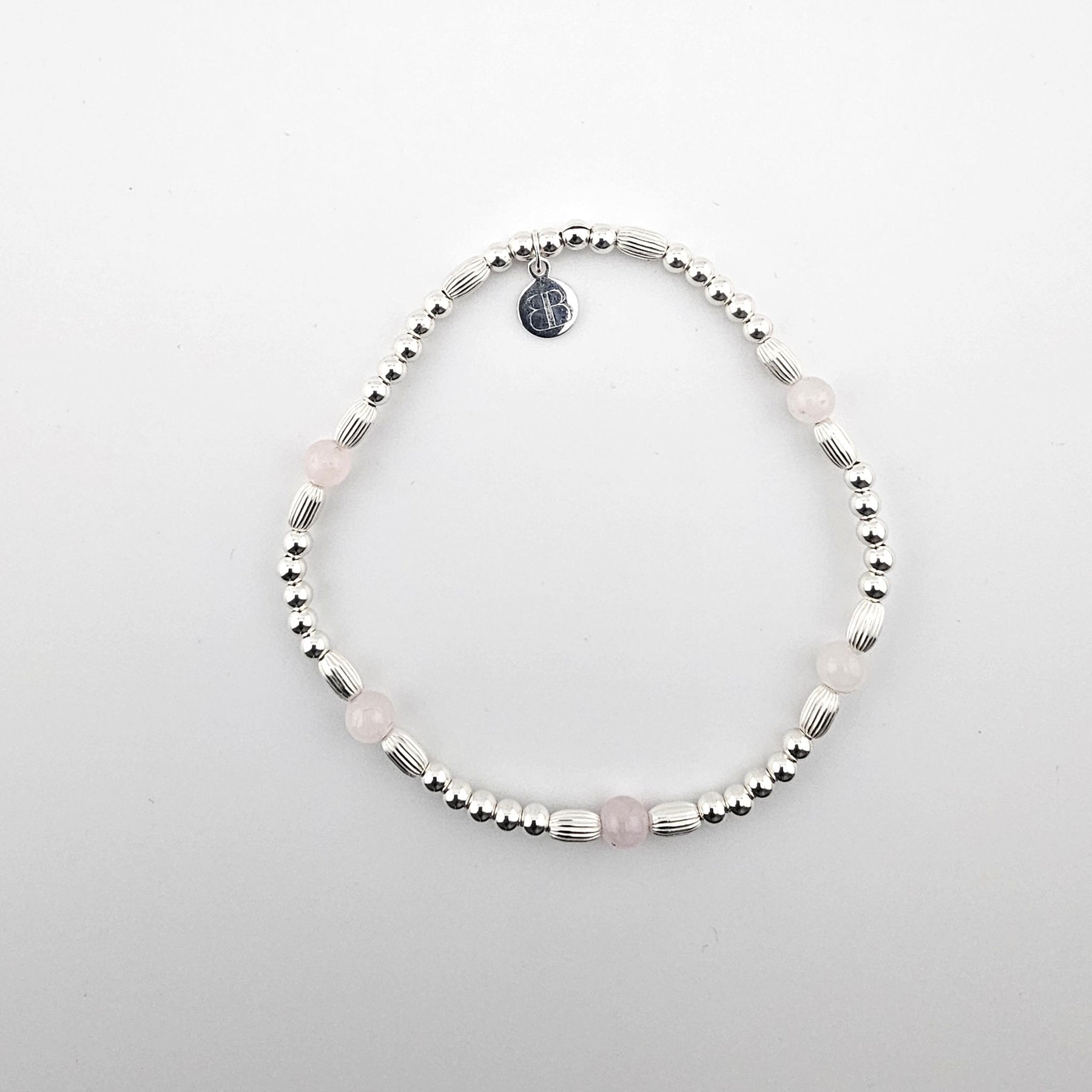 A delicate, feminine anklet handcrafted with sterling silver beads and soft blush rose quartz — designed to bring beauty, balance, and subtle everyday elegance. Each piece is created using high-polish round silver beads, ribbed sterling silver detail beads, and genuine rose quartz stones known for their soothing, heart-opening energy.