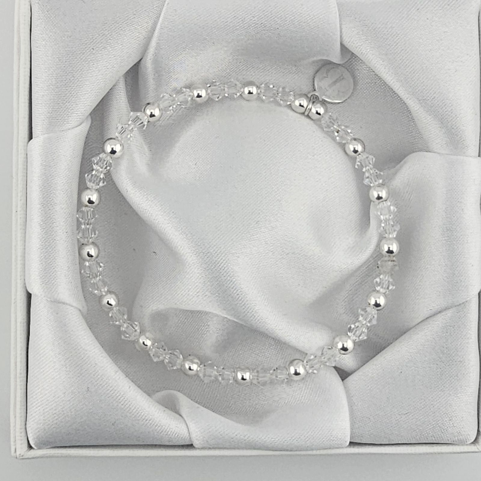 Featuring faceted clear crystal beads that glisten with every movement, this bracelet balances elegance and simplicity.
