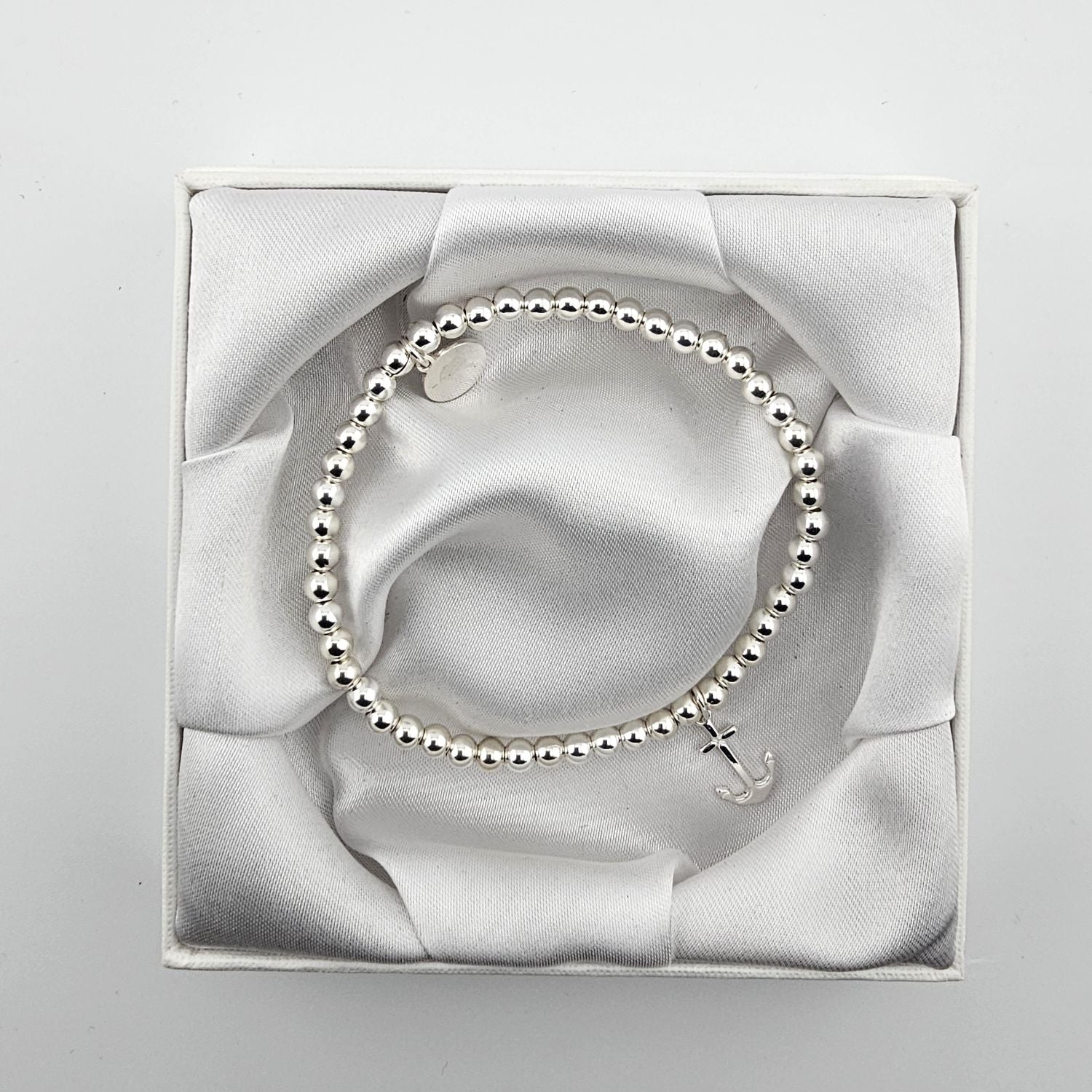 Handmade in the UK with 925 sterling silver beads, this bracelet features a sleek anchor charm that adds a touch of nautical-inspired elegance. Perfect worn solo for a minimalist look or layered with your other Bessie Bae favourites.