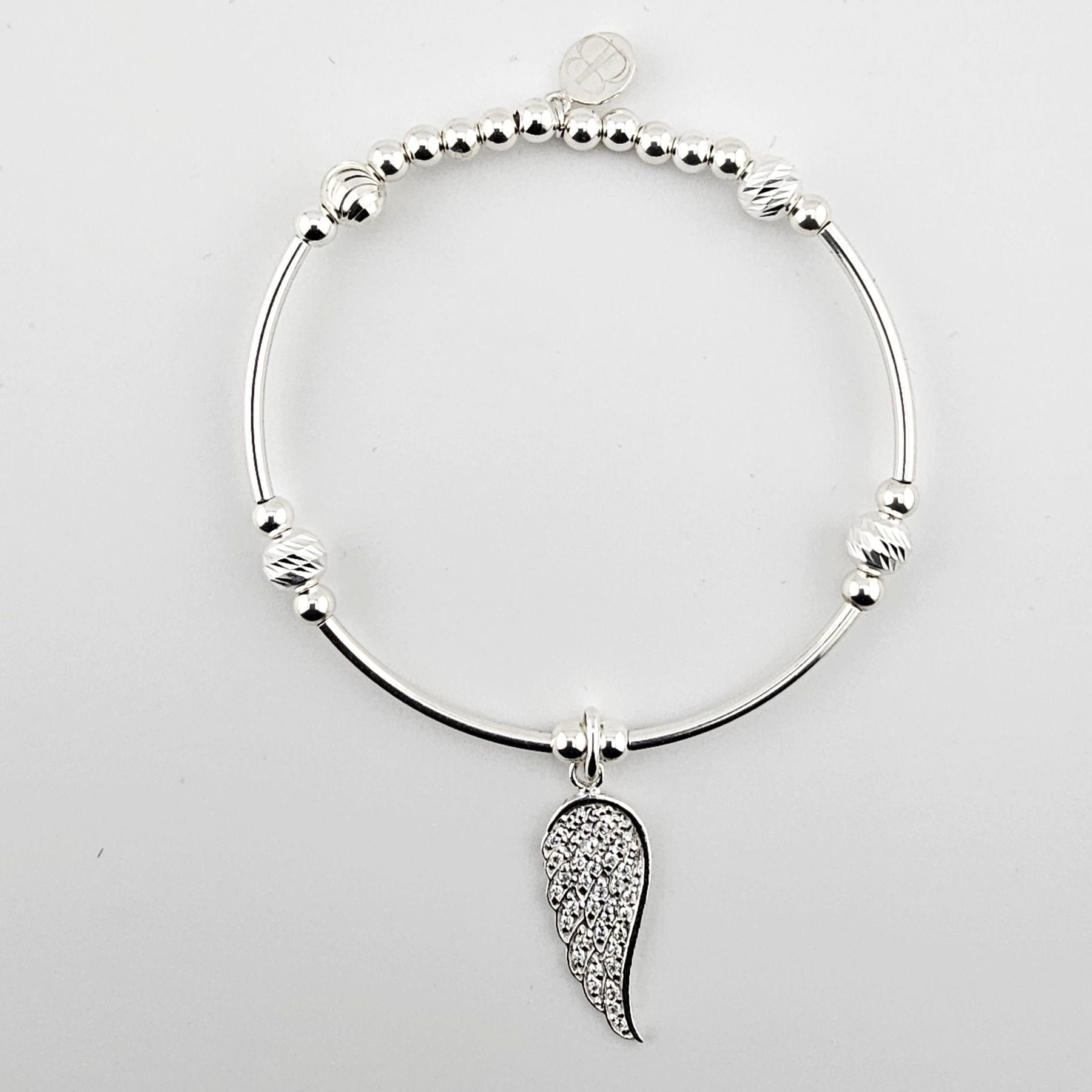 - Charm: 24mm Angel Wing with Cubic Zirconia.
