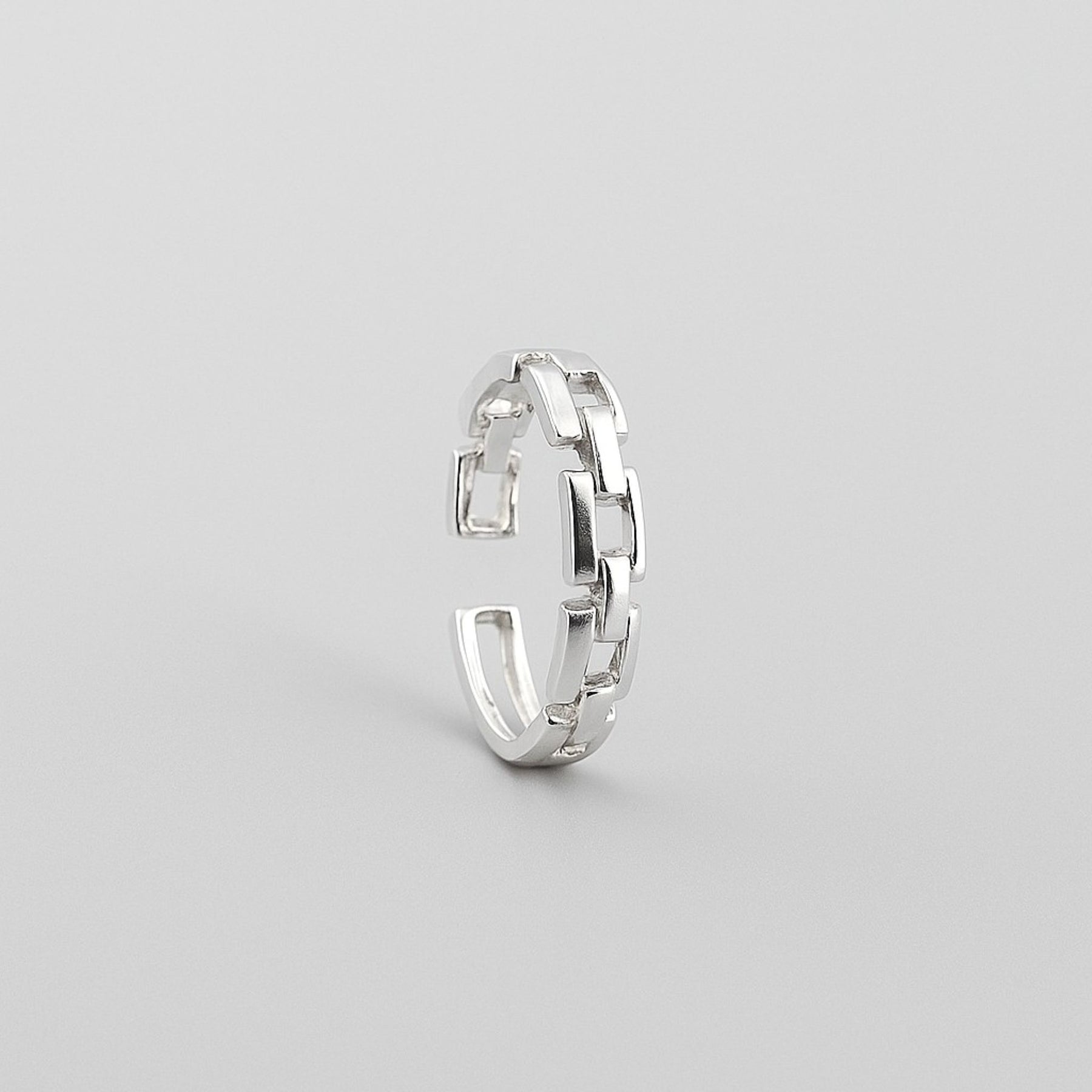 Bring modern edge and timeless craftsmanship together with this Sterling Silver Chain Link Adjustable Ring. Inspired by bold chain motifs, this ring embodies strength and connection, made from solid 925 sterling silver for a lasting, radiant finish.