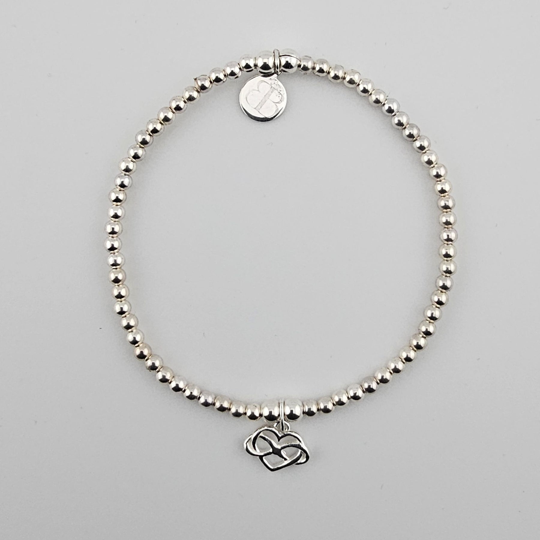 Handcrafted in the UK with high-quality 925 sterling silver beads, it features a delicate interlocking heart charm, symbolising the unbreakable bond between two souls. Perfect as a thoughtful gift for a loved one or a reminder of self-love, this bracelet combines minimalist style with emotional depth.