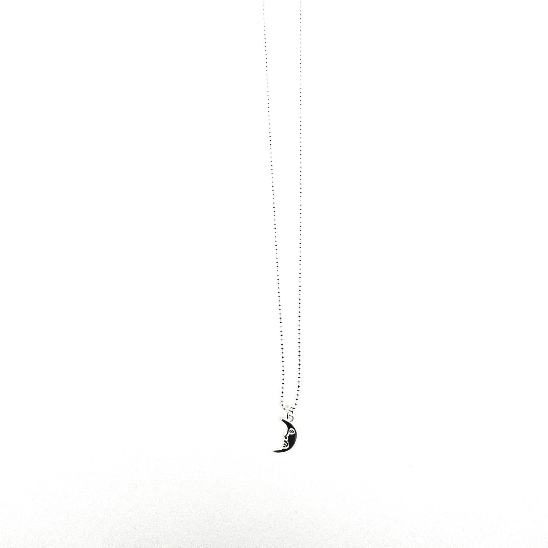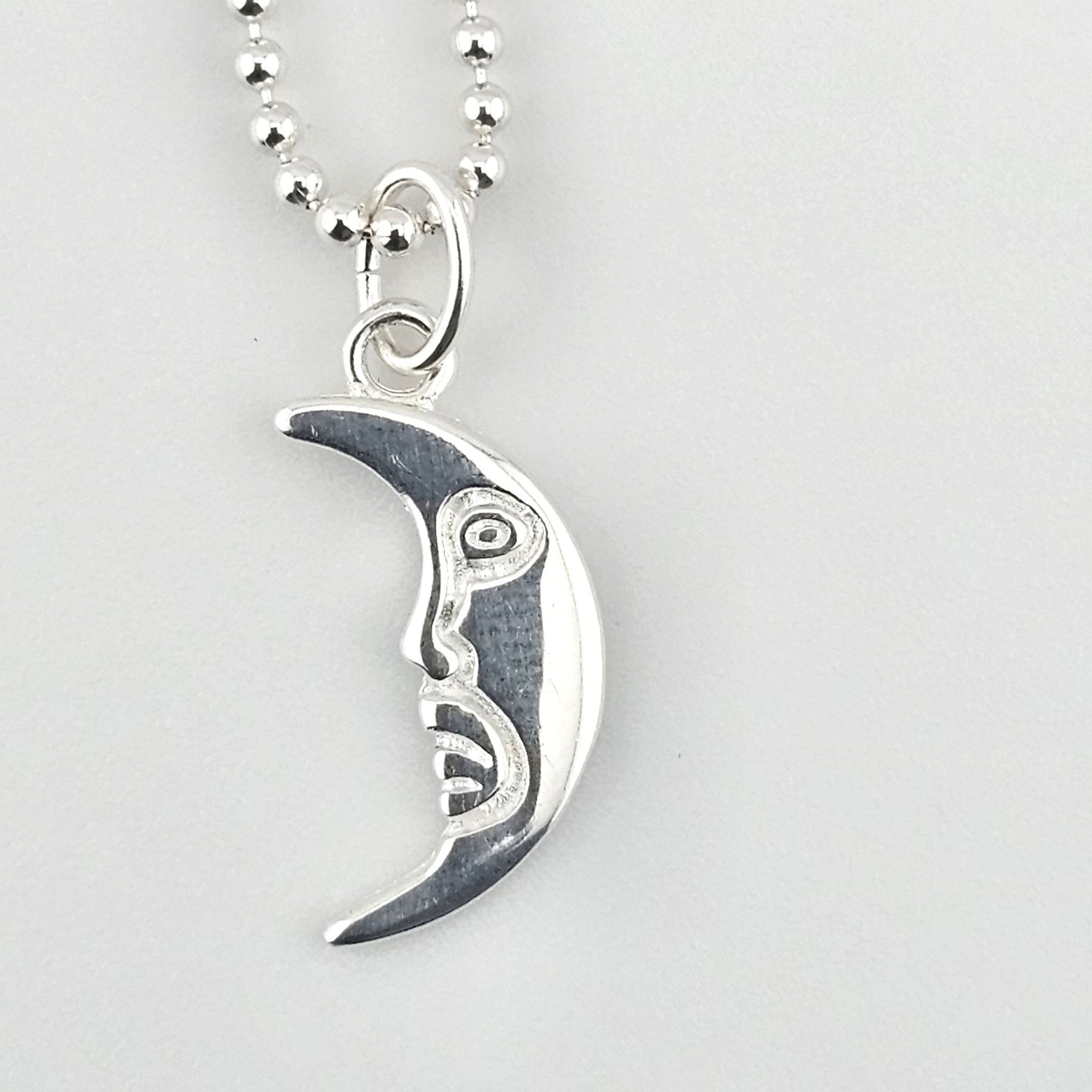 - Crescent moon charm with sculpted face detail.