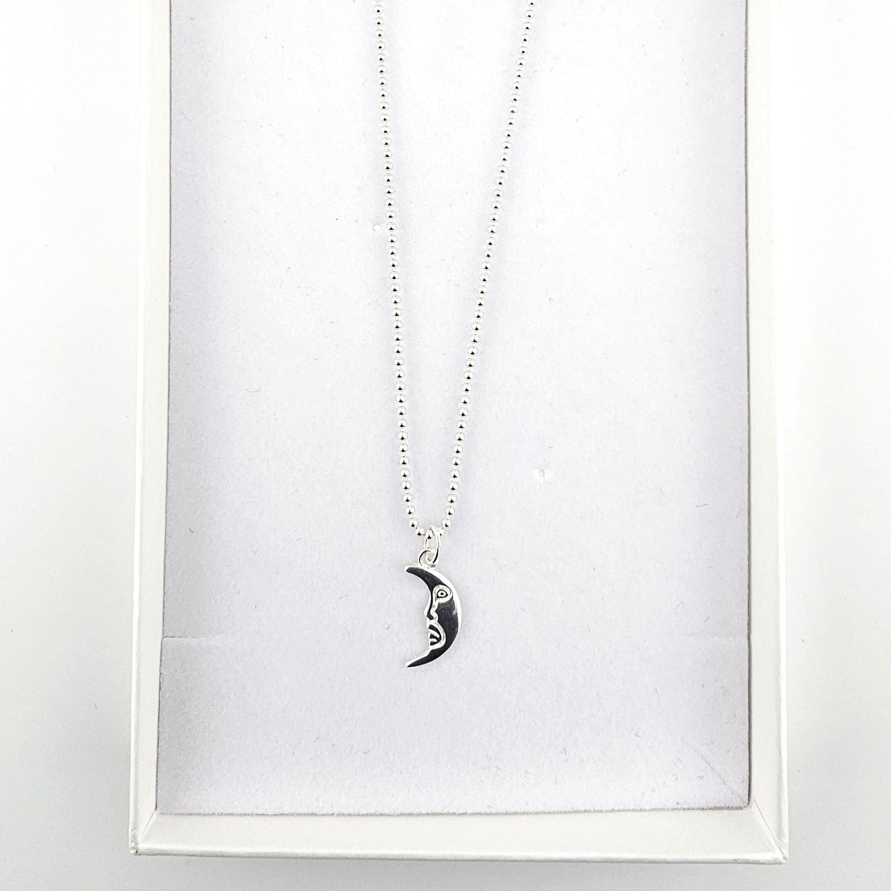 The moon has long been a symbol of intuition, guidance and gentle resilience — a quiet light that shines even in the darkest sky. This delicate crescent-moon necklace captures that calm energy, crafted in polished sterling silver with a softly sculpted face detail that feels poetic and timeless.
