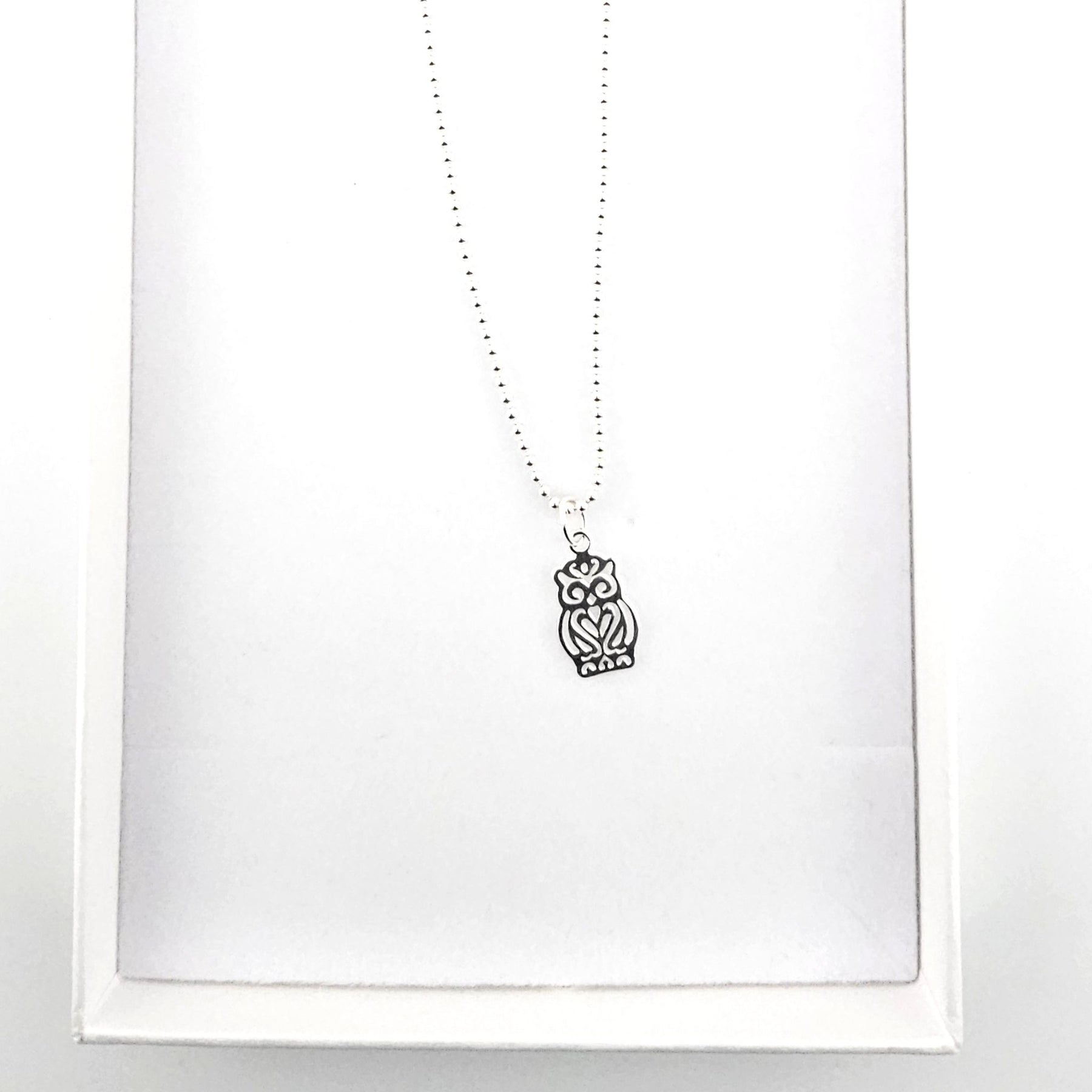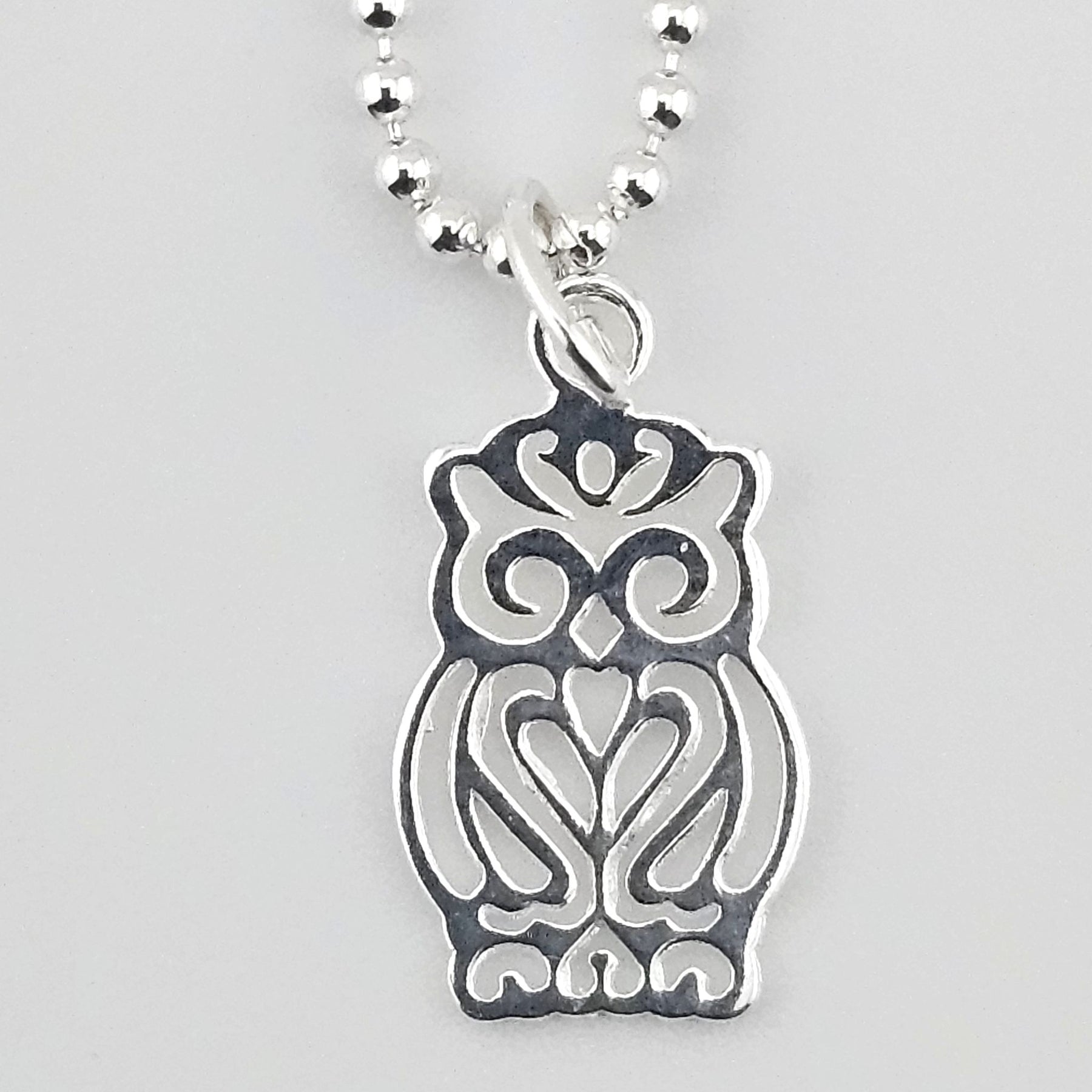 - Owl charm with intricate cut-out detailing.