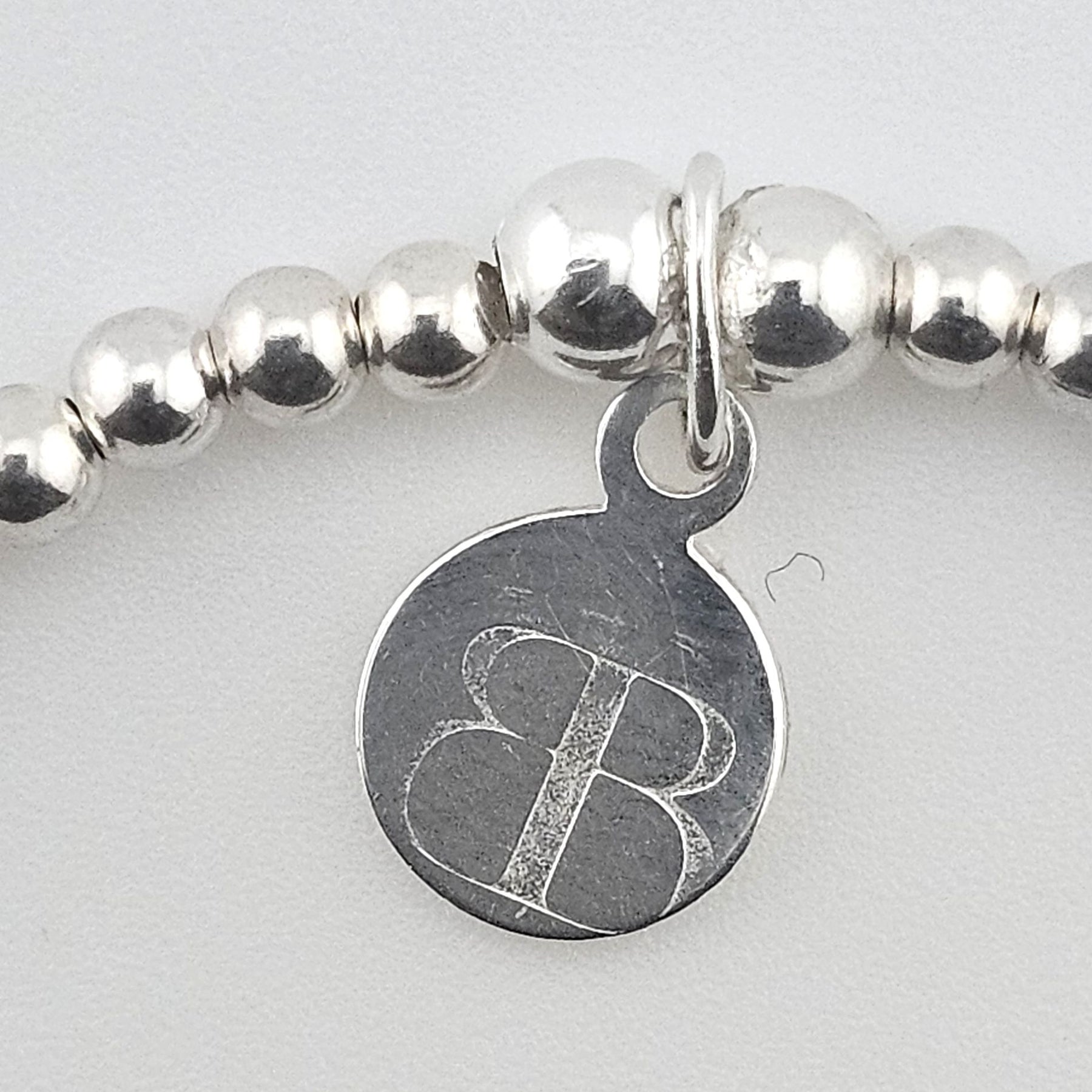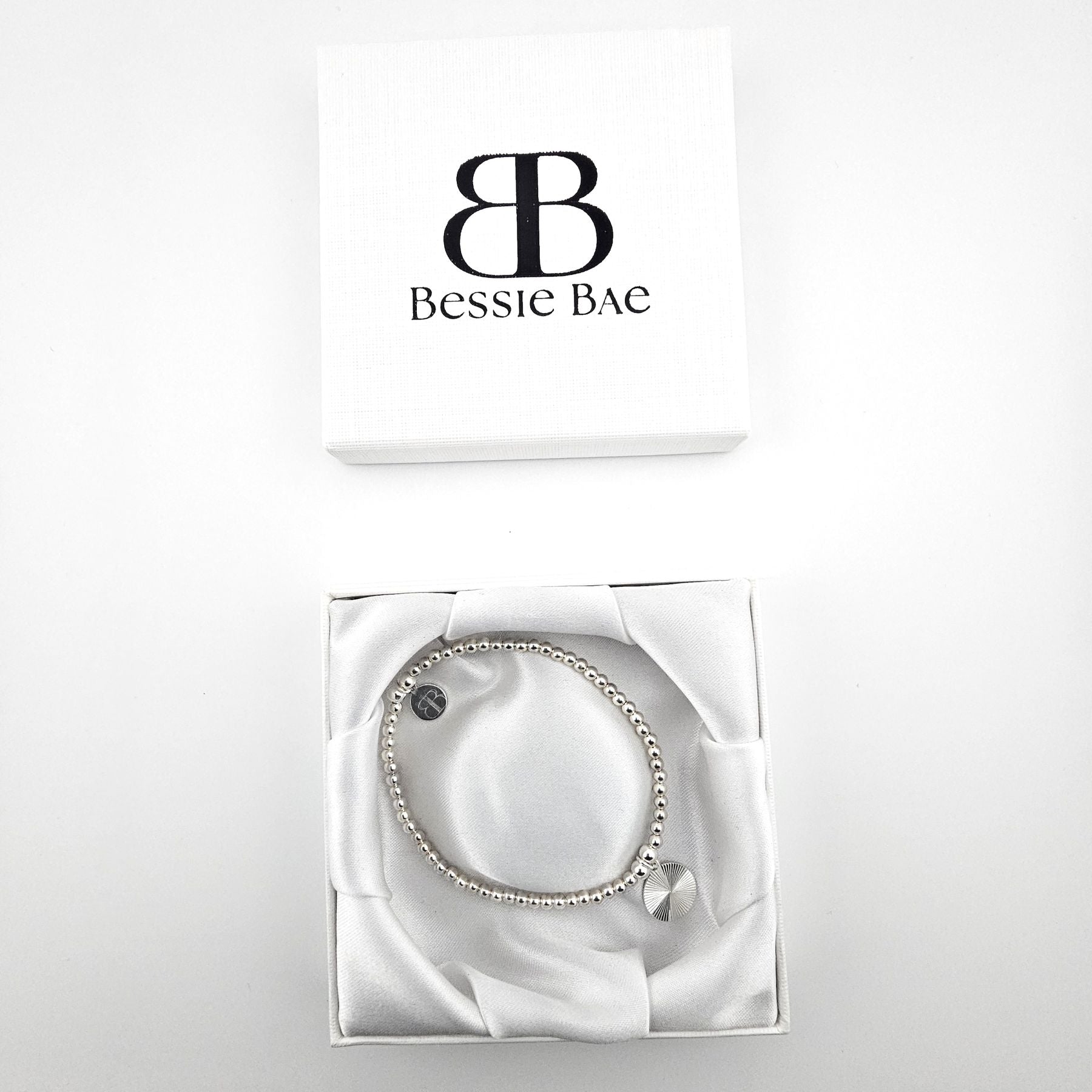 The smooth sterling silver beads reflect light beautifully, making it perfect for layering or wearing solo. Finished with the signature Bessie Bae logo charm, it’s a timeless piece that complements any outfit, day or night.