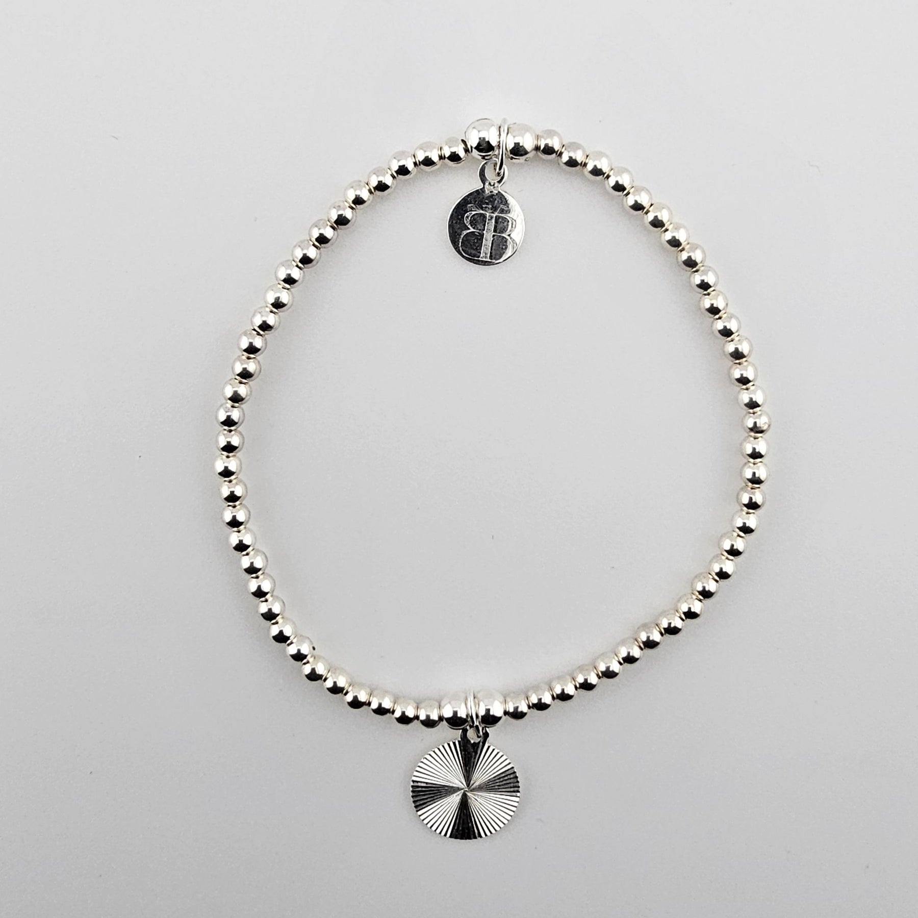 Sterling Silver Sunburst Bracelet | Radiant Disc Charm