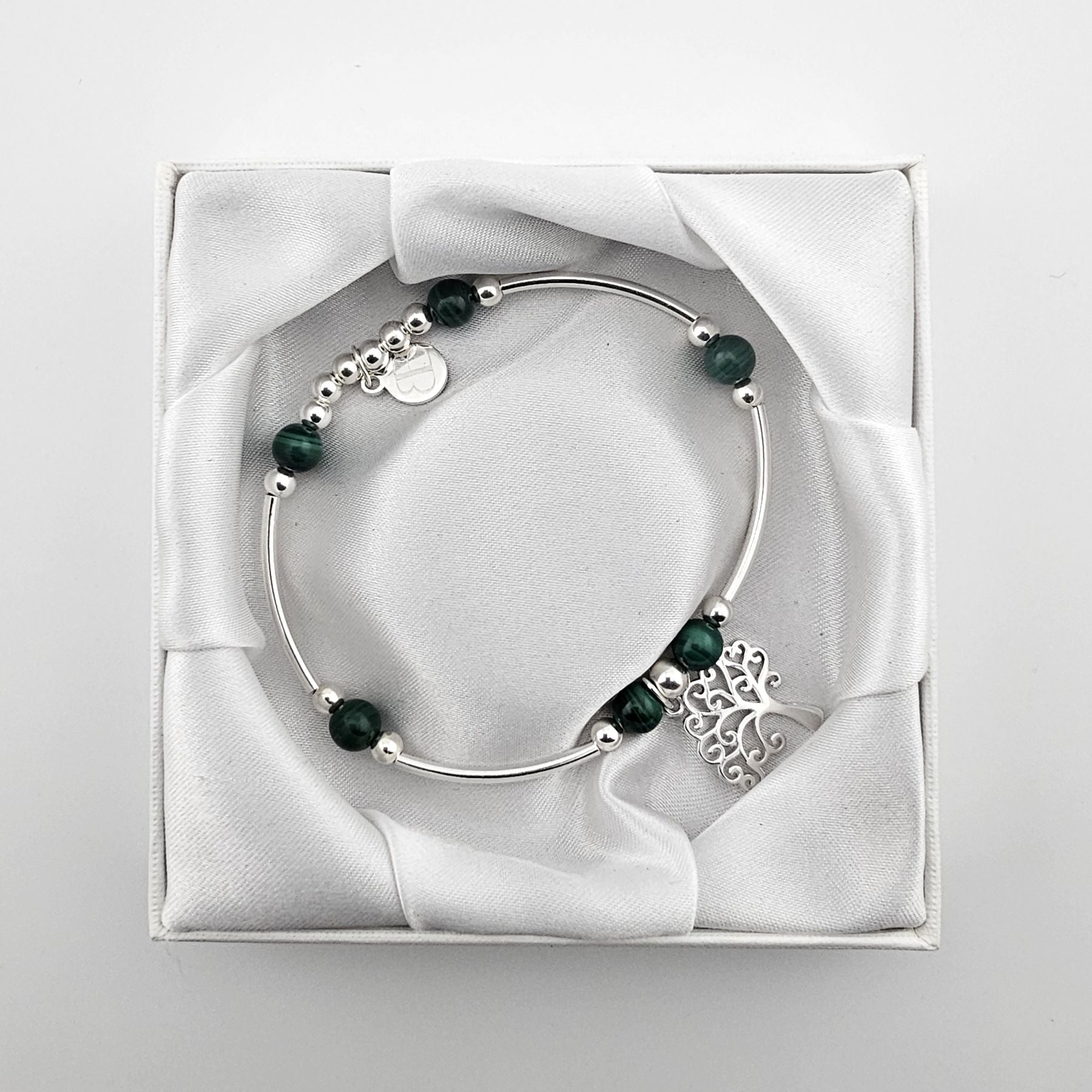 Celebrate growth, strength, and balance with the Sterling Silver & Malachite Tree of Life Bracelet — a symbol of renewal and connection to nature. This elegant piece features a delicate Tree of Life charm paired with genuine malachite gemstones and sterling silver curved and round beads, creating a timeless, meaningful design.
