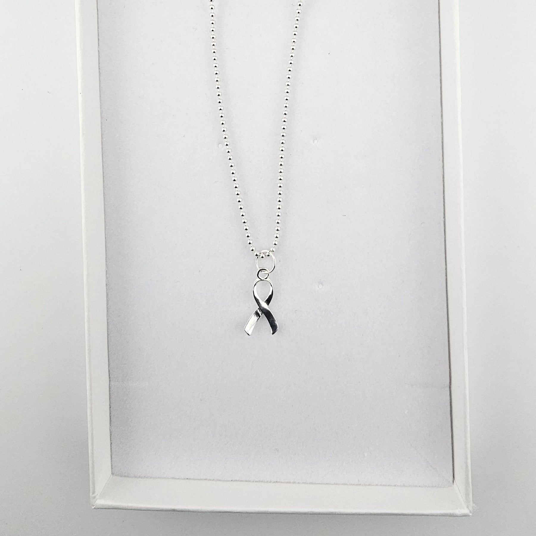 Crafted in polished 925 silver, the simple ribbon design carries deep meaning: honouring resilience, celebrating healing, or offering comfort during difficult times. Whether worn for yourself or gifted to someone special, it speaks quietly but powerfully — a symbol of love, courage and connection.