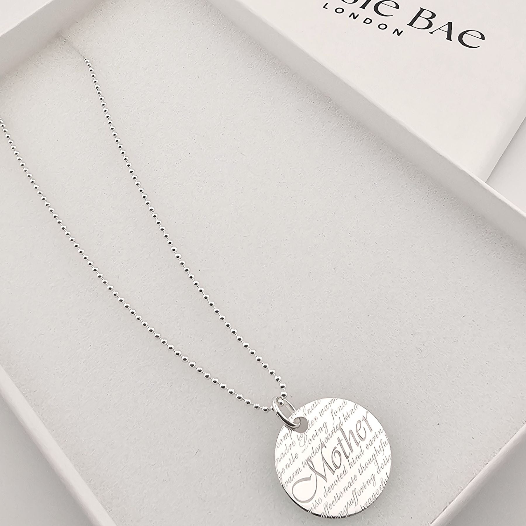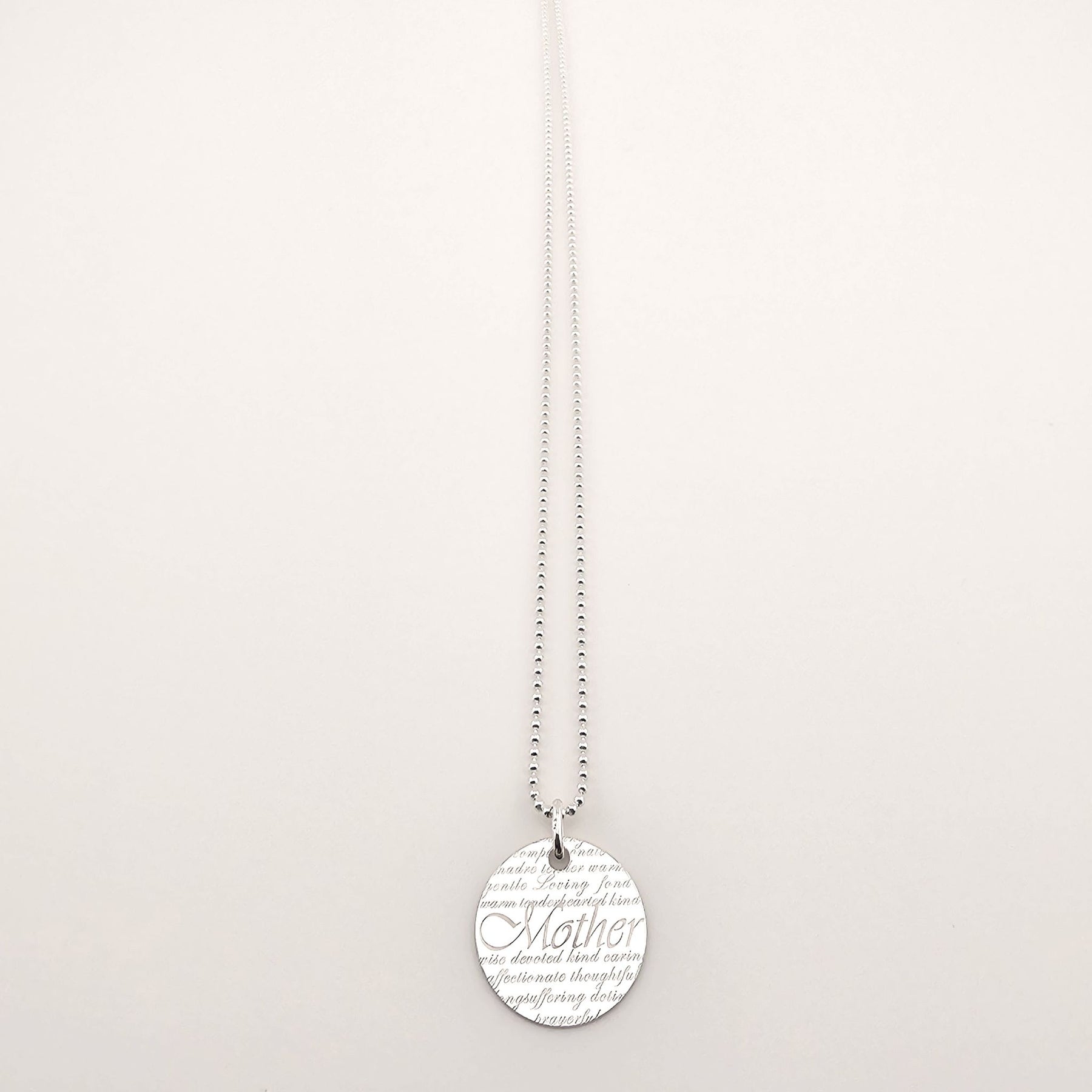 Sterling Silver Mother Necklace – Engraved Disc Pendant on Fine Chain