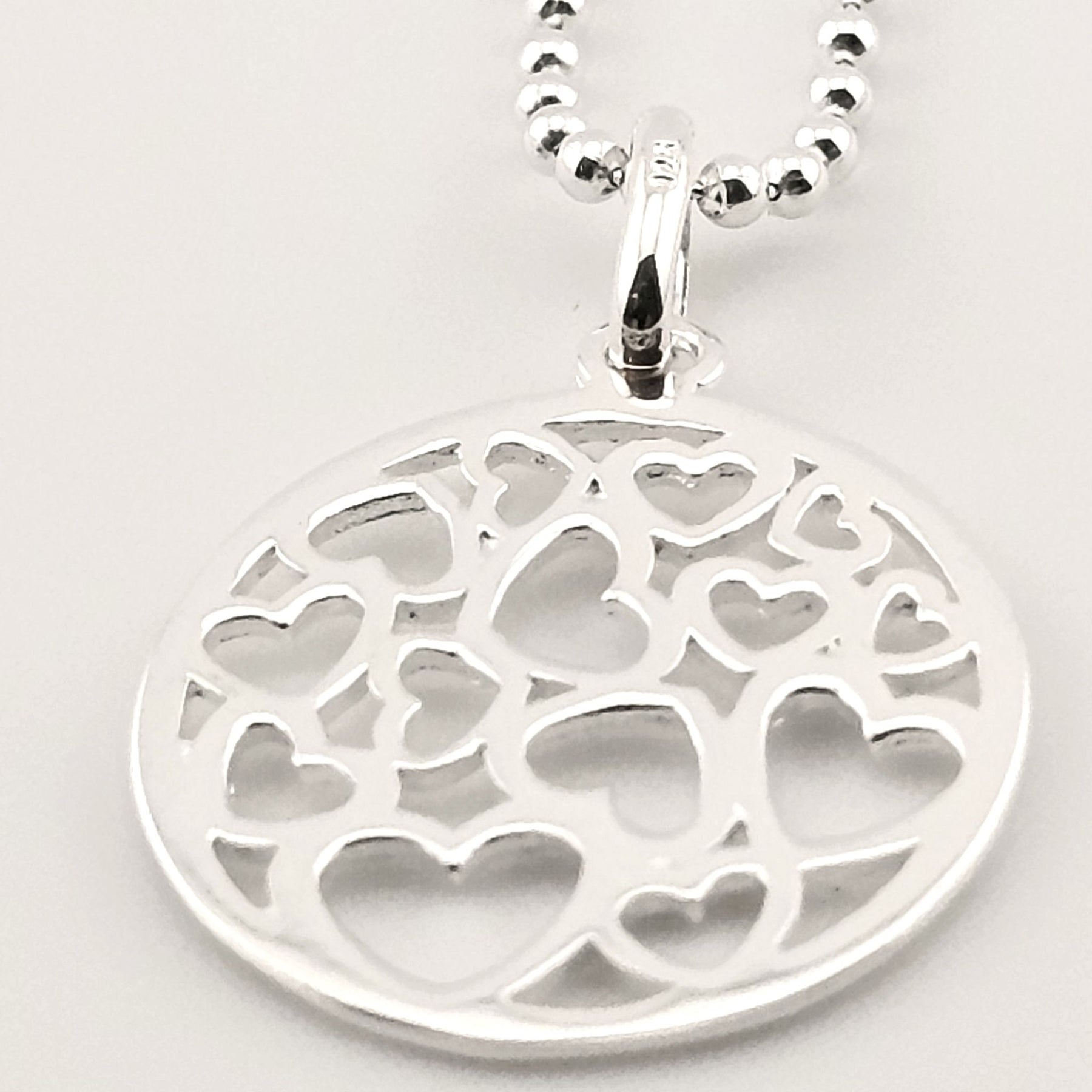 Sterling Silver Round Heart Pendant Necklace – Cut-Out Design